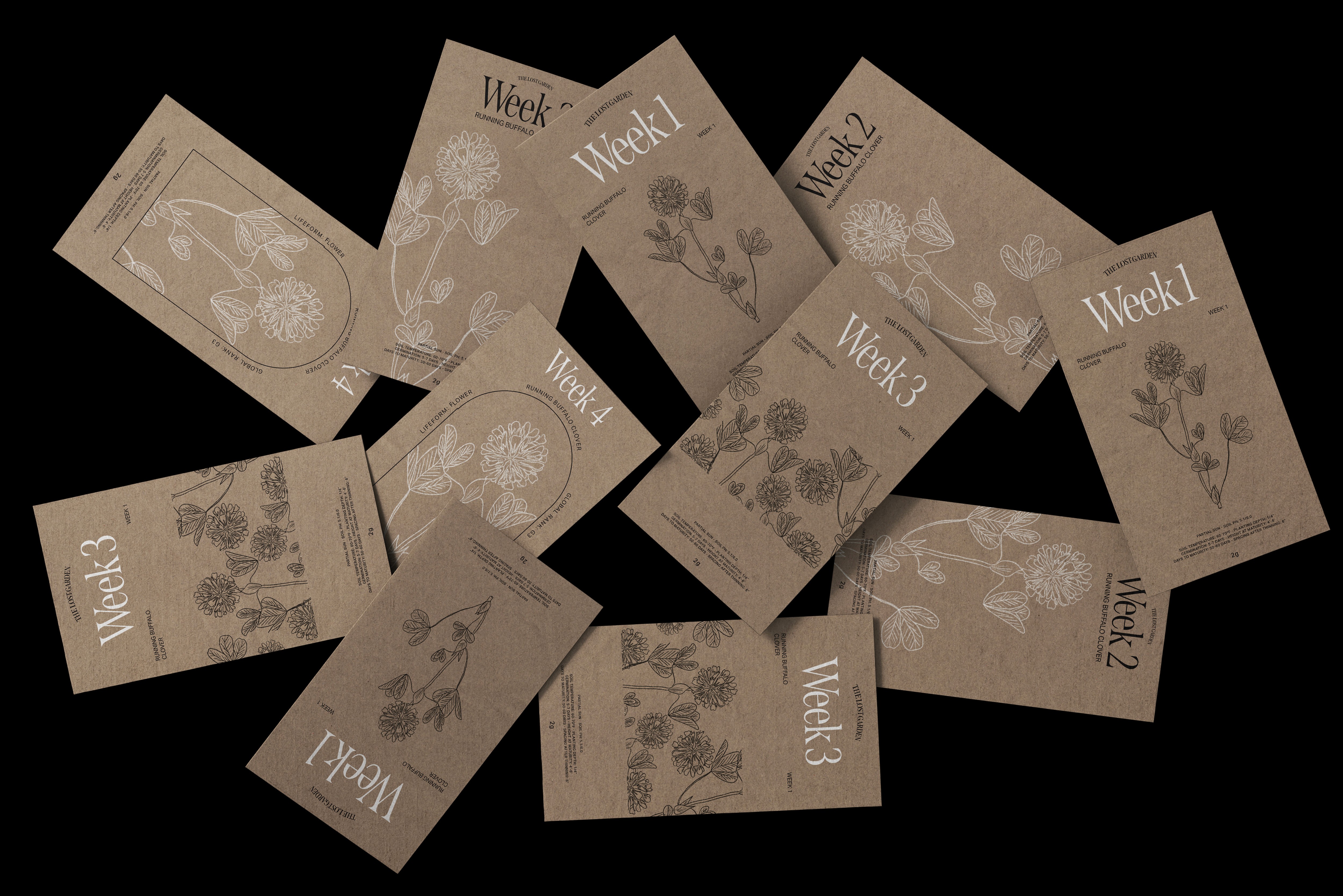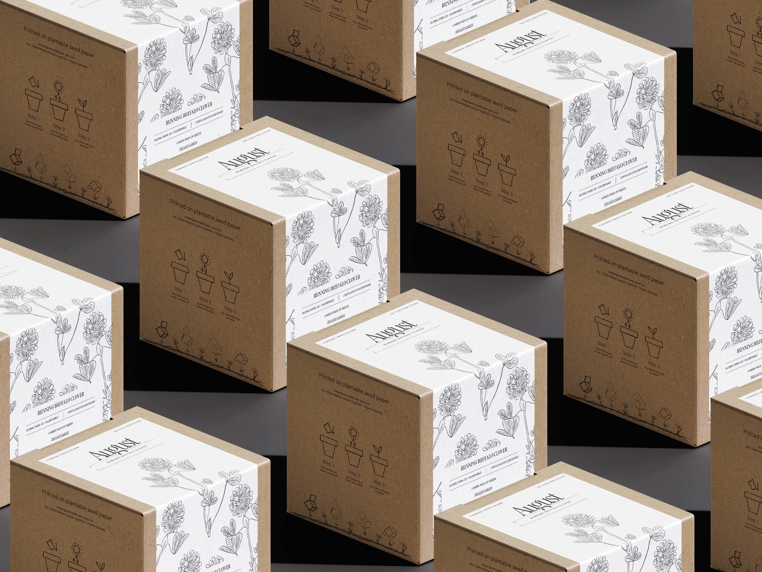 The packaging uses biodegradable cardboard for its sustainability and natural look, aligning with the organic theme. Hand-drawn sketches of each endangered flower add a personal, nature-connected feel.