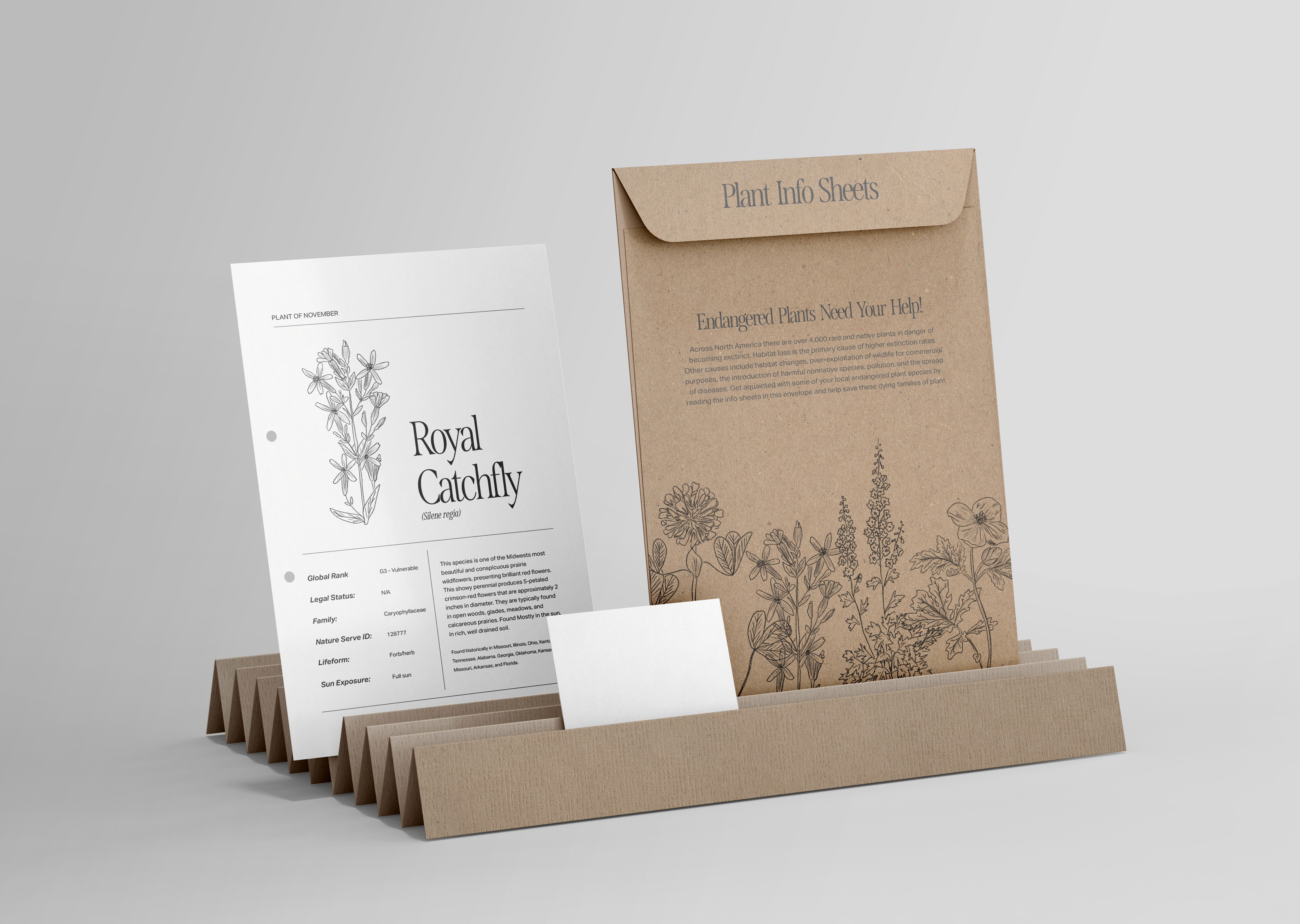 This calendar was designed to raise awareness about endangered plant species in Ohio and promote conservation through thoughtful design. Inspired by the loss of over 4,000 rare native plants across North America, the project highlights the human impact on plant habitats.